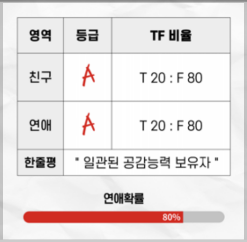 나의 TF성향을 알아볼 수 있답니다.