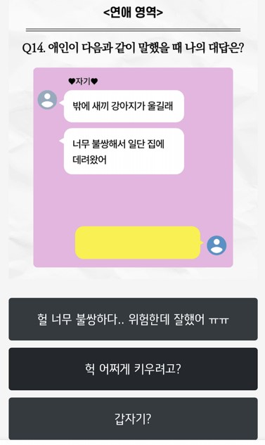 | 테스트잇 공감 능력 테스트 (2) | 2024.01.31 |